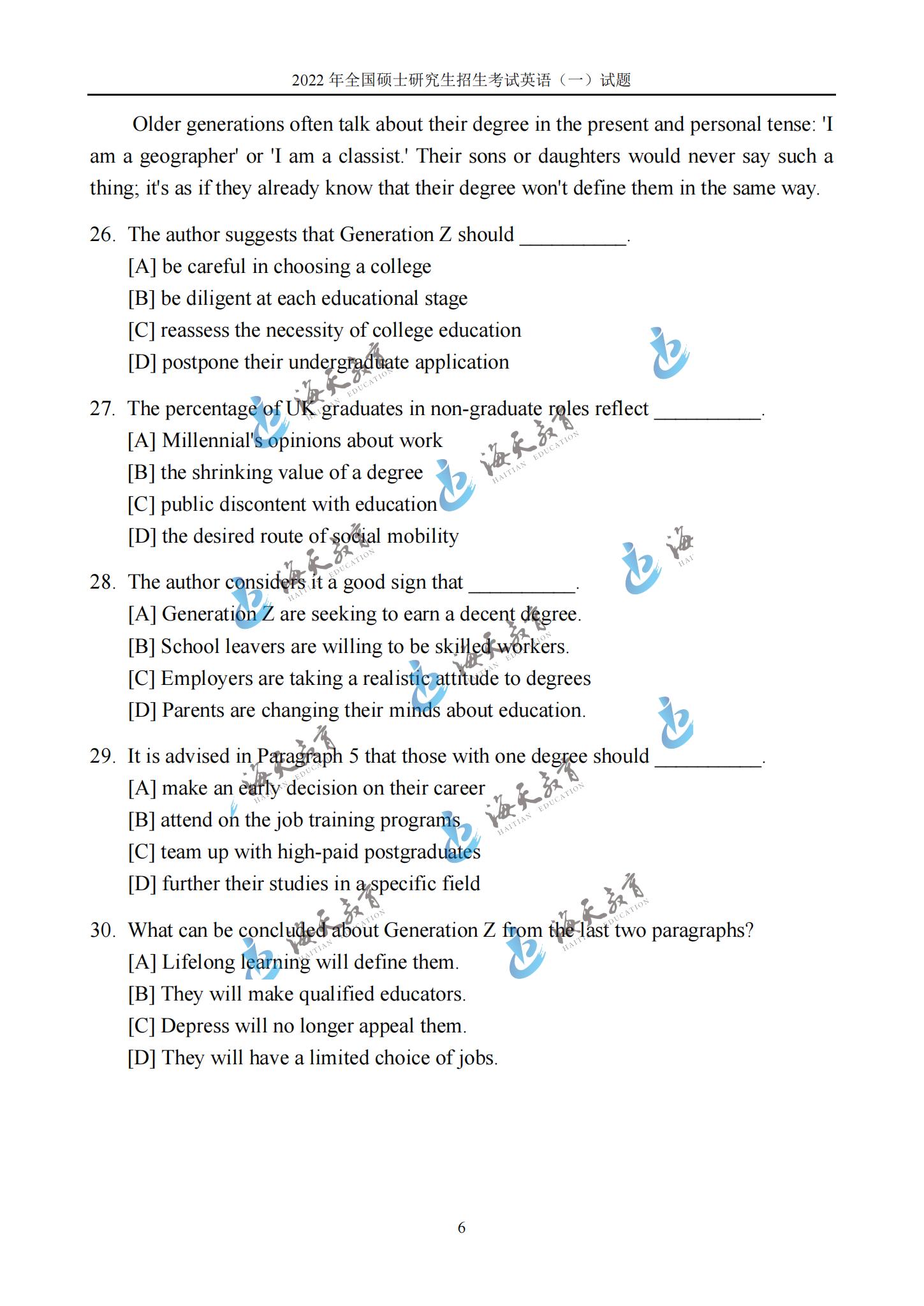 2022考研英语一真题原文完整版